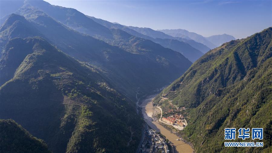 位于怒江边的托坪村五湖易地扶贫搬迁安置点(4月15日摄,无人机照片)。新华社记者 江文耀 摄