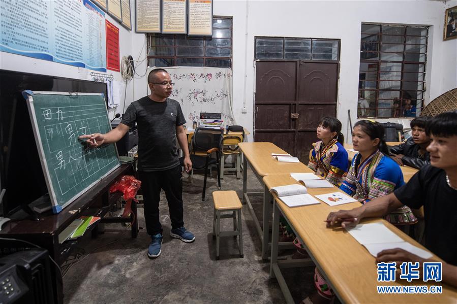 在云南省西双版纳傣族自治州勐海县布朗山布朗族乡曼囡村曼班三队,村民在村里上夜校(4月10日摄)。新华社记者 胡超 摄