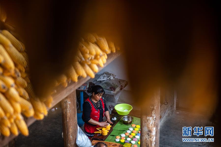 在云南省腾冲市清水乡三家村中寨司莫拉佤族村,村民杨彩芹在做大米粑粑(5月14日摄)。新华社记者 胡超 摄