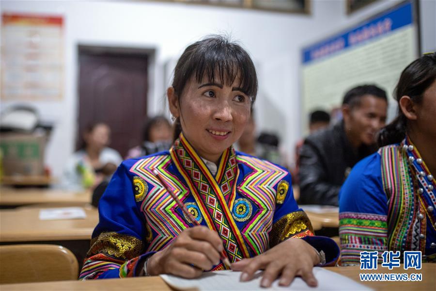 在悠扬的歌声中,娜四还和村民一起到夜校里学识字。曼班三队驻村扶贫工作组组长罗志华说,娜四虽不打猎了,但还是村里数得上的能人。“她脑子活、不怕生,学文化学得最快,村里种的茶树就数她管理得最好!”罗志华说。