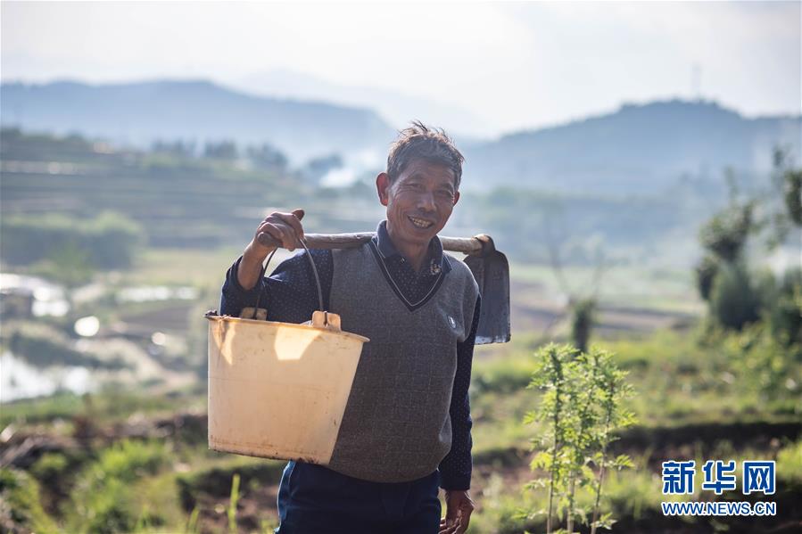 在云南省腾冲市清水乡三家村中寨司莫拉佤族村,村民赵加吉干完农活后准备回家(5月15日摄)。新华社记者 胡超 摄