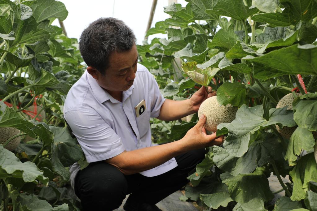 齐少坤在大棚里查看网纹瓜长势(采访对象供图)