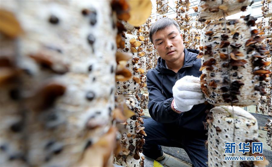 2020年4月22日,柞水县小岭镇金米村村民肖青松在采摘木耳。 陕西省商洛市柞水县小岭镇金米村是传统的山区农业村,为拓宽贫困群众的增收渠道,金米村将木耳产业作为脱贫攻坚主导产业,引进5家农业龙头企业,建成木耳菌包生产厂和木耳分拣包装生产线,并推行“借袋还耳”“借棚还耳”木耳产业发展新模式,带动全村188户贫困户参与木耳产业发展。 (新华社记者 梁爱平 摄)