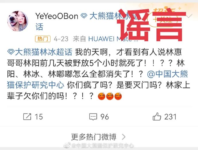 大熊猫是中国的国宝,如果真的爱大熊猫,请大家科学理性看待大熊猫饲养管理工作,尊重大熊猫保护事业来之不易的成果,我们至少可以做到不造谣、不信谣、不传谣。虽然大熊猫不会上网,但也请大家为他们营造一个风清气正的网络环境。