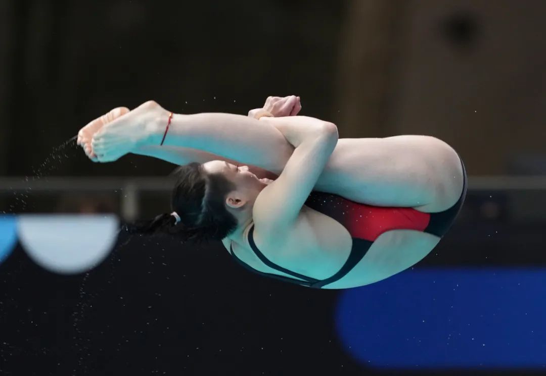 当日4个项目的比拼中,备受关注的是陈芋汐、全红婵在女子10米台上的较量,这一次全红婵获得胜利。全红婵表现出色,其中3个动作都有裁判打出10分,特别是难度系数3.2的407C、难度系数3.3的207C这两跳她都拿到满分。总分458.20分与她东京奥运会创纪录的夺冠成绩466.20分仅相差8分。陈芋汐表现同样出彩,也有3个动作拿到裁判给出的10分,并在难度系数3.2的5253B上得到满分,最终以438.90分收获亚军。