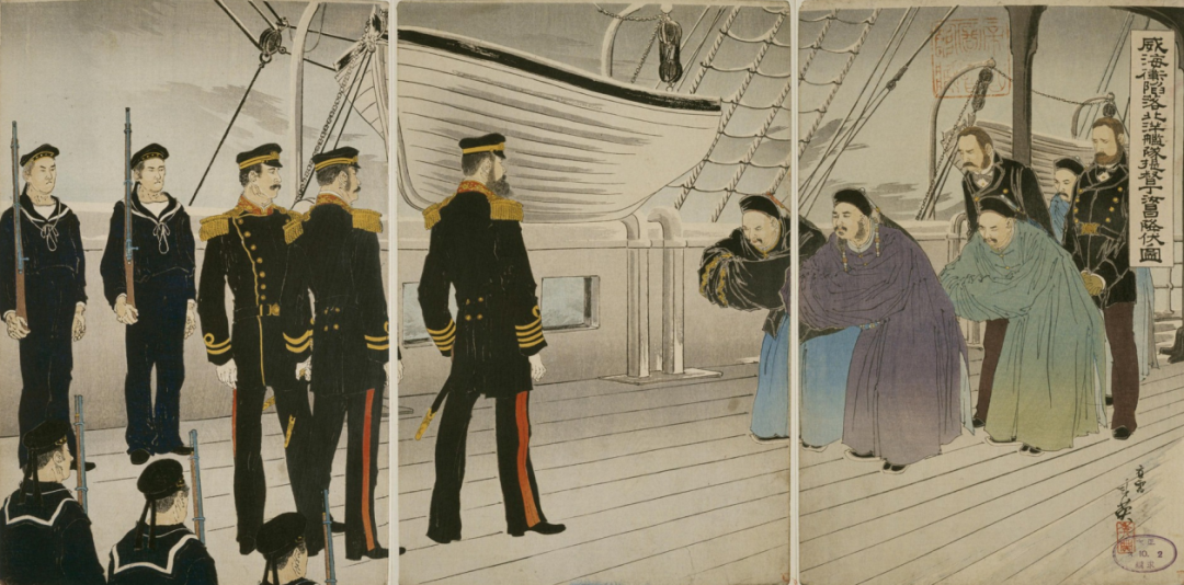 日本“威海卫沦陷北洋舰队提督丁汝昌投降之图”(所画内容不符合相关史实)