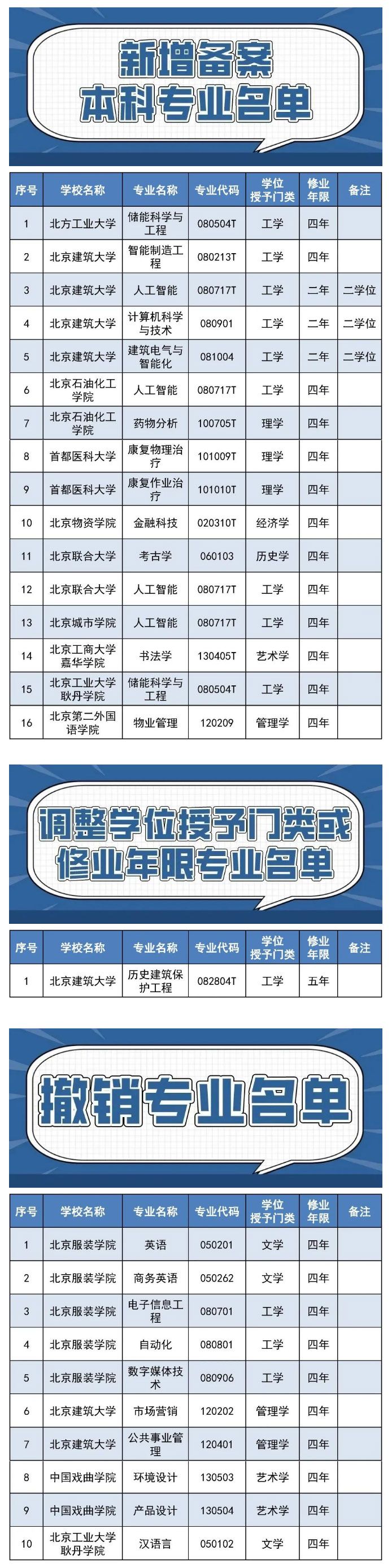 4所高校撤销10个专业!北京市属高校本科专业备案和审批结果公布