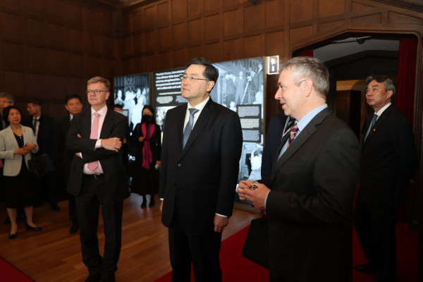 当地时间2023年5月10日,国务委员兼外长秦刚在柏林参观波茨坦会议旧址并发表讲话。
