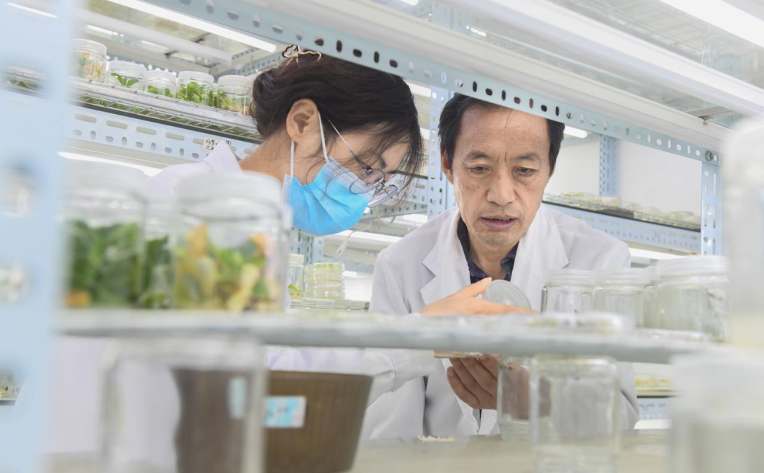 5月5日,包满珠(右一)在实验室指导学生培育新品种。新华每日电讯记者 程敏 摄