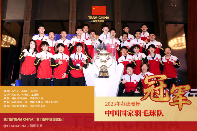 21日,2023年苏迪曼杯世界羽毛球混合团体锦标赛在苏州落幕。在中国队与韩国队的决赛中,国羽3:0完胜对手,实现了苏杯三连冠!