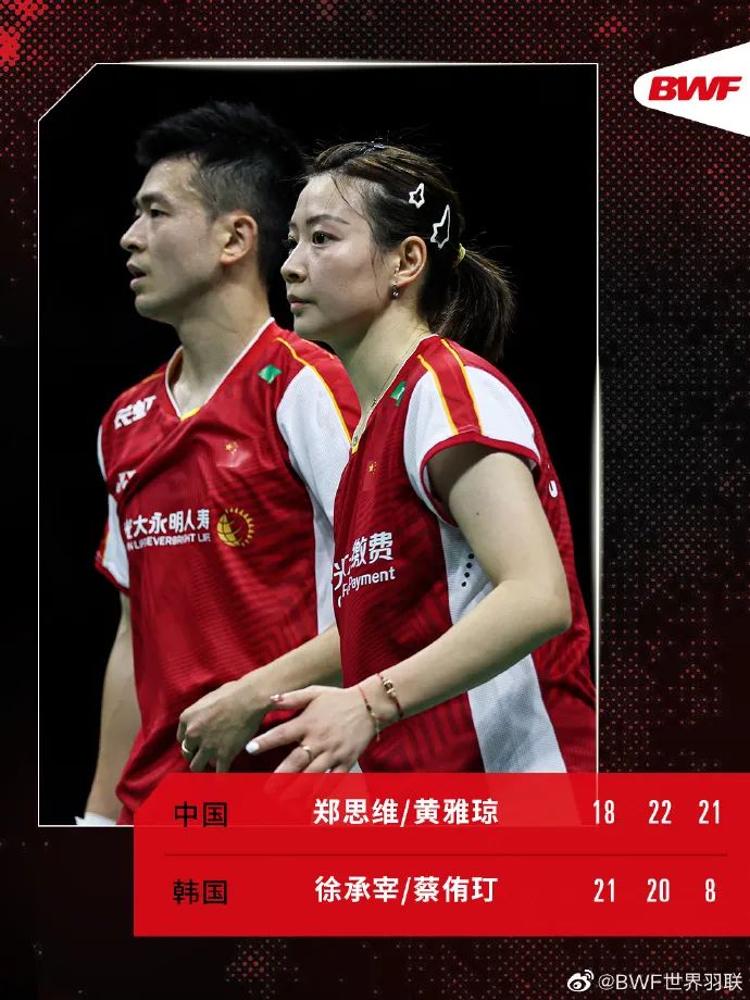 郑思维/黄雅琼代表国羽率先出场,最终以2:1逆转韩国组合徐承宰/蔡侑玎。第二场男单,石宇奇2:0战胜李宥奎。第三场女单由陈雨菲对阵安洗莹,陈雨菲发挥稳定,2:0终结比赛。