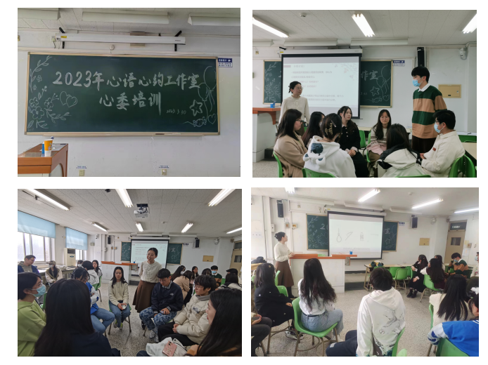 2. 加强骨干培训,提高团队水平。工作室针对班级主要心理骨干及心理工作室学生团队,分主题、分层次开展心理骨干工作培训及经验交流沙龙,始终以专业、科学为导向,形成“心约”系列主题活动之“心约·同窗”和“心约·沙龙”;针对个体案例,逐一研讨,具体分析,交流总结,构成“学习共同体”,提升心理素质教育质量。