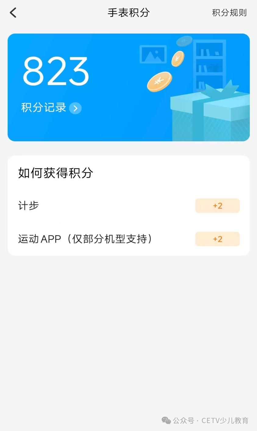 以小天才电话手表为例,用户通过完成每日签到、步数挑战等日常任务,可以获得积分。根据其规则说明,积分是鼓励孩子积极行为的产品模块,可用于手表中个性化元素的获取。