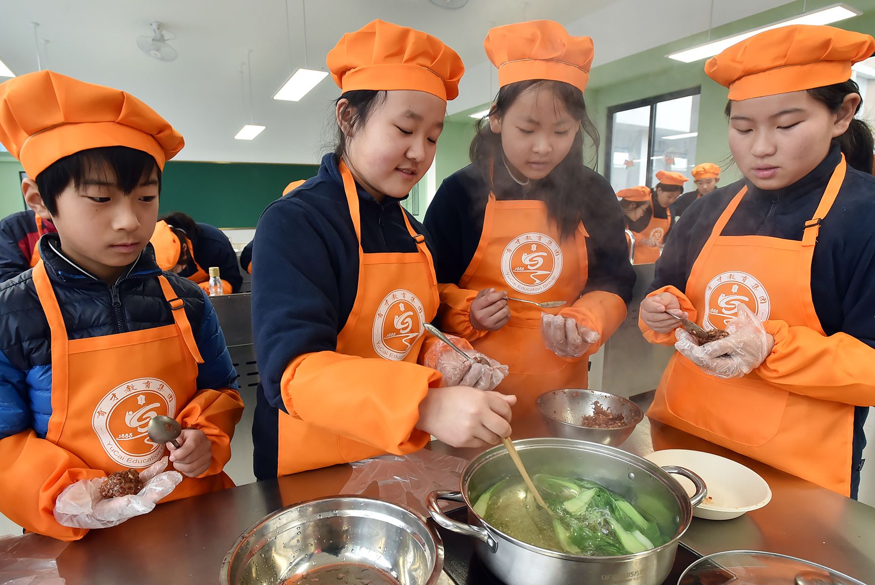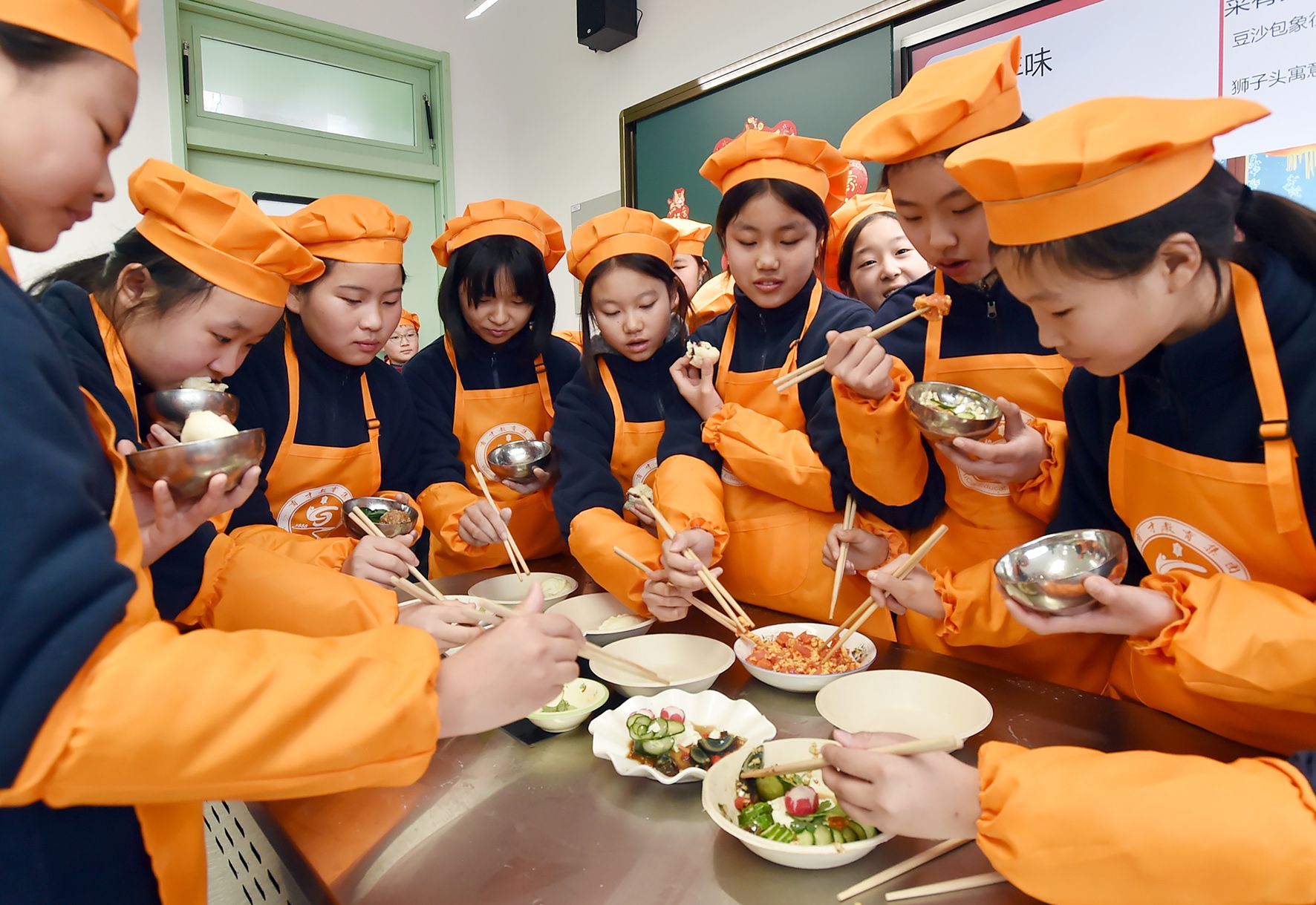 “蒸豆沙包要让面团发酵到两倍大,这样口感才松软!”“红烧狮子头的肉馅要剁得细腻,顺着一个方向搅拌才入味!”1月30日下午,江苏省扬州市育才小学福运门分校的烹饪教室内香气弥漫、笑语盈盈。