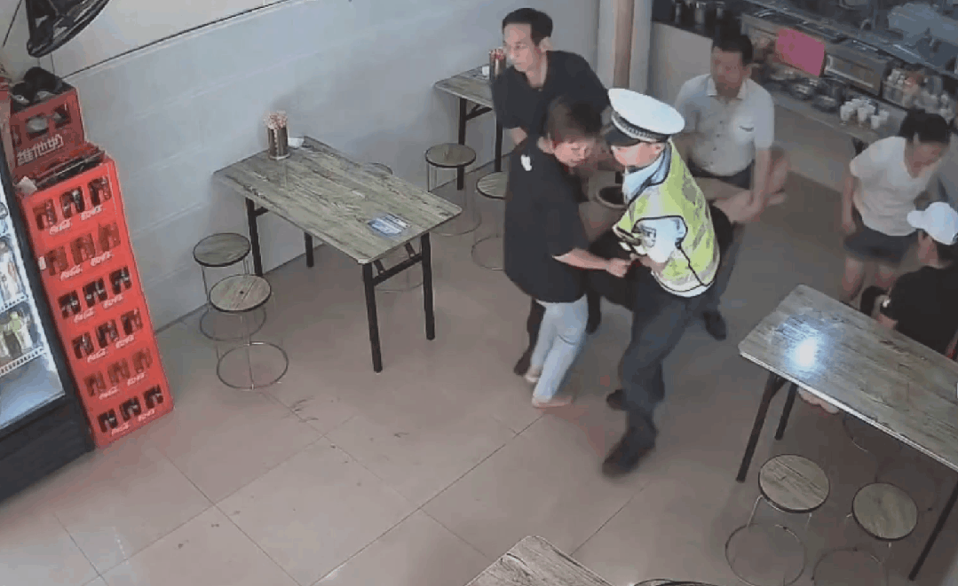 近日湖北黄冈红安县城关镇北门岗社区一家早餐店内店主罗先生因高温中暑引起高血压突发心梗店主妻子出门求助时正好遇到在北门岗实验小学执勤的交警陶守武