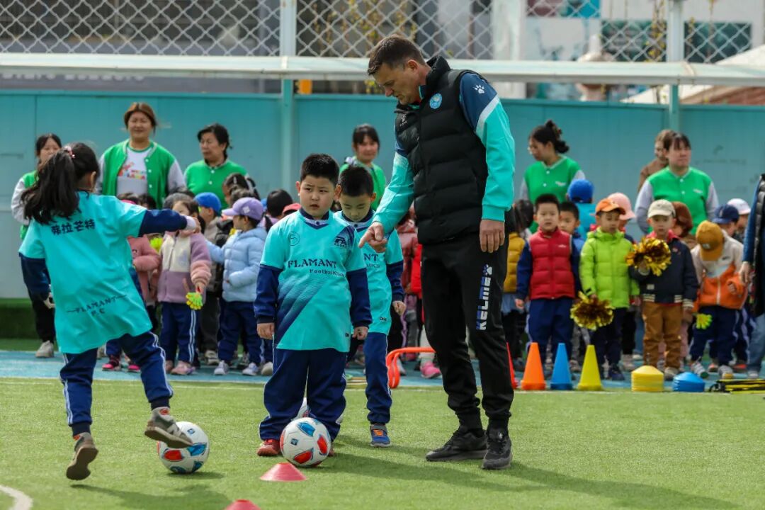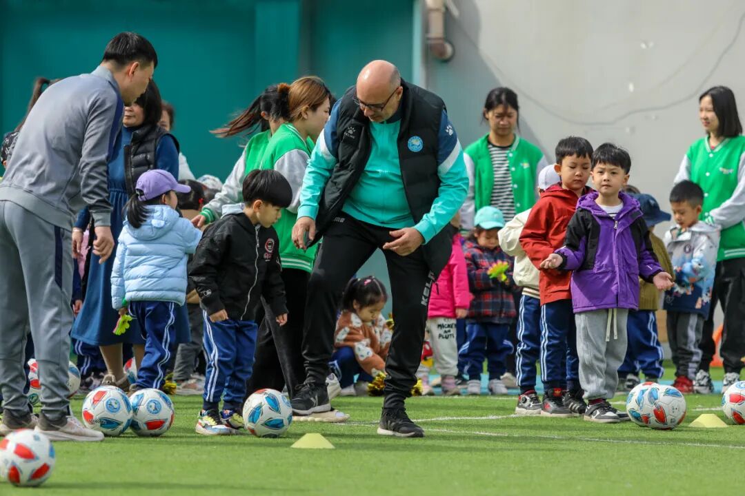 天津足协希望通过举办”外教下基层“活动,让更多处在幼儿及青少年阶段的孩子认识足球、了解足球,通过各种各样的足球游戏和训练爱上这项运动。活动现场,三名外教代表天津足协向弗拉芒特(天津)幼儿园的小朋友们赠送了足球。孩子们的脸上洋溢着笑容,充满着对足球的热爱。足球课上,三名外教亲身示范,虽然语言不通,但足球在这一刻成为了彼此沟通的桥梁。