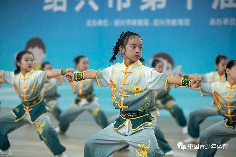 “嗨哈嗨哈”声四起,身穿练功服的少年习武爱好者轮番上场,他们精神抖擞,动作流畅地展示着中华传统功夫。近日,2023年浙江省绍兴市第十届中小学武术操比赛在柯岩中心小学育才路校区举行。