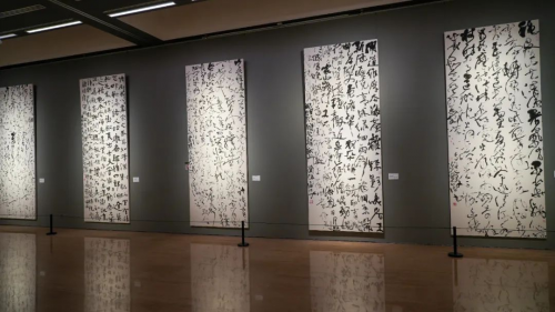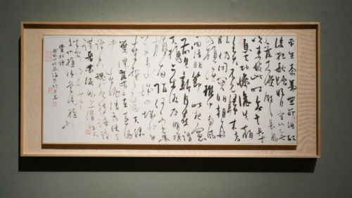 作品的展陈布置也是此次展览的用心之处,涵盖了立轴、手卷、扇面、斗方、楹联等不同形制、尺幅悬殊的近百幅作品。所有作品根据不同的展示环境设计陈列方案,巨幅立轴雄放率真且气势撼人,小幅横卷清逸典雅而细致入微,为观众提供了多维度的欣赏视角与审美感受,演绎出东方文化魅力的多样图景。陈海良尤其关注书法作品的展示形式与观看方式之间的关系,他认为书法从书斋走向展厅,再进入当代家庭空间,都应充分调动书家创作、创新的积极性,只有以高度的文化自信、艺术自觉来深挖传统文化资源,才能将书法呈现出中国特有的艺术风貌与感染力。
