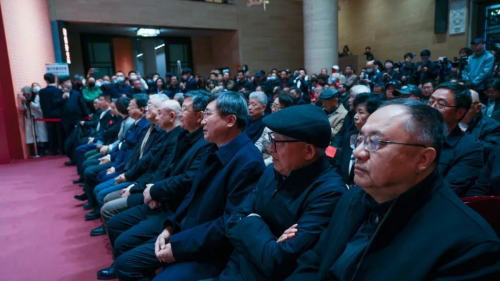 开幕式现场,中国艺术研究院院长周庆富,农工党中央专职副主席兼秘书长邓蓉玲分别致辞。中国美术馆党委书记安远远宣读全国政协副秘书长、民盟中央副主席、中国美术馆馆长吴为山致辞,中国文联书法艺术中心主任王彦宣读中国书协党组书记李昕致辞。中国书协主席孙晓云发来致辞视频。