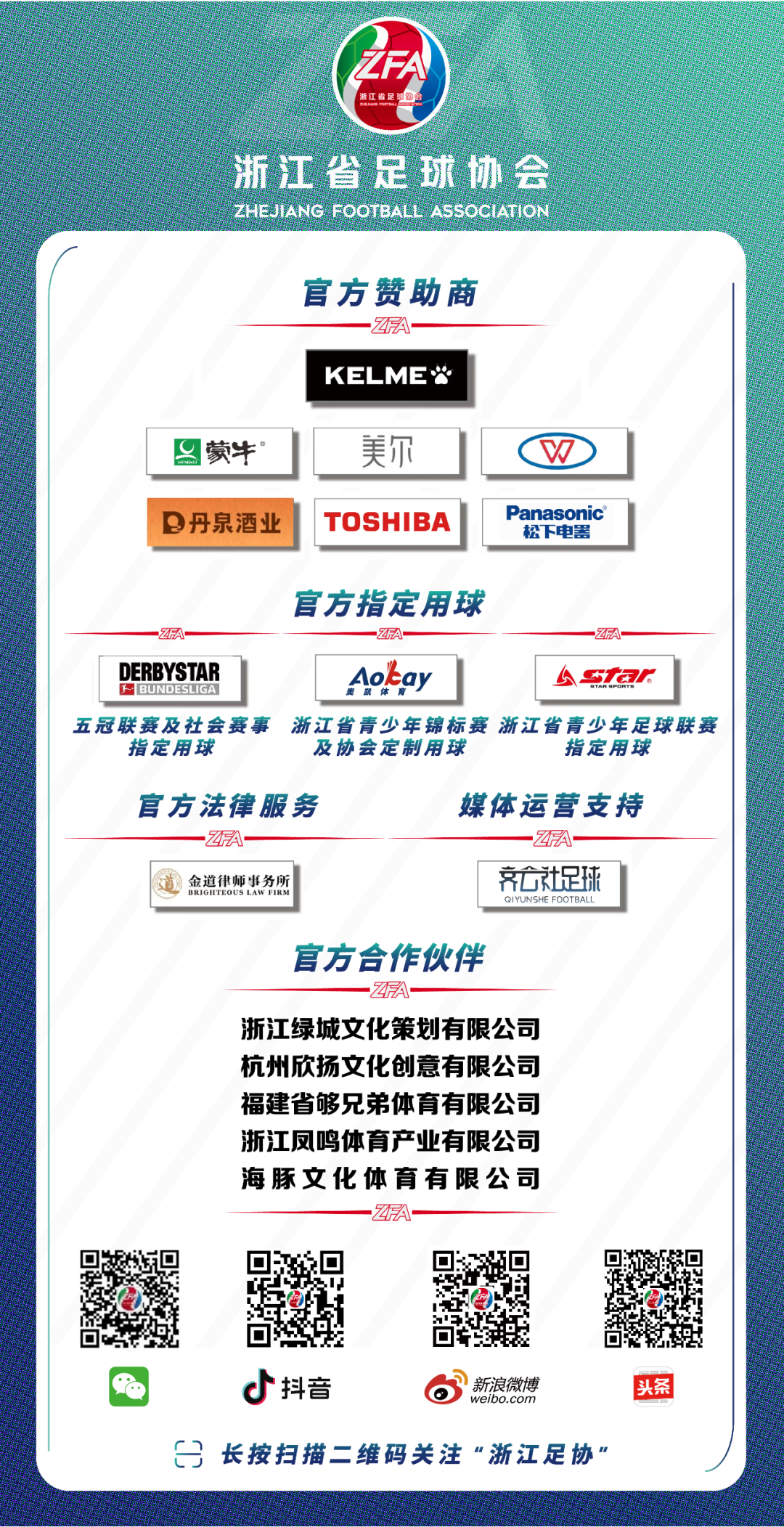 同时,由浙江省体育局、浙江省教育厅指导,浙江省足球协会主办的2024第三届中国青少年足球联赛(浙江赛区)暨2024年浙江省青少年足球联赛报名工作也已启动,该项赛事是全省规模最大、影响最广、参与人数最多的青少年足球比赛,赛事打破体教参赛壁垒,打造全省青少年共同参与的赛事平台,包含小学到高中全部年龄段组别,面向全省所有学校、青训机构、俱乐部开放报名,构建多元化足球后备人才培养体系。登录微信“浙里足球”小程序找到相应组别即可完成报名。参赛咨询: