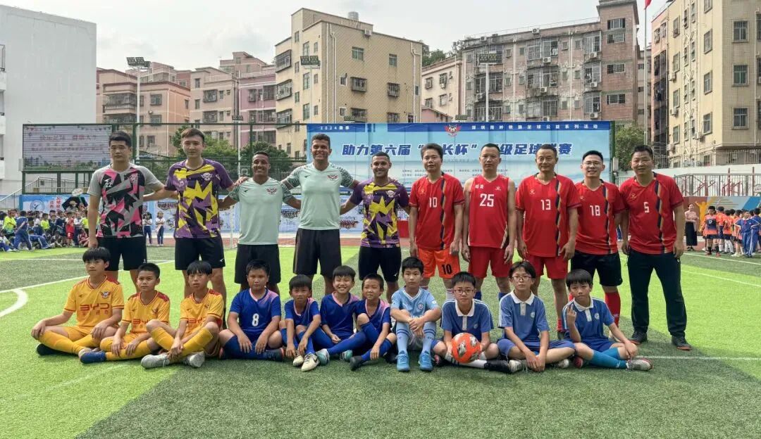 4月15日下午,在深圳市龙岗区文化广电旅游体育局的指导下, 2024赛季深圳南岭铁狼“足球公益”系列第一站走进龙岗区沙西小学,助力“校长杯”班级足球联赛活动顺利举行。深圳市龙岗区文化广电旅游体育局陈世桦、沙西小学校长郑树彬、南岭铁狼总经理邓海军,南岭铁狼青训负责人陈建兴、青训总监维度及五超球员代表出席本次公益活动。