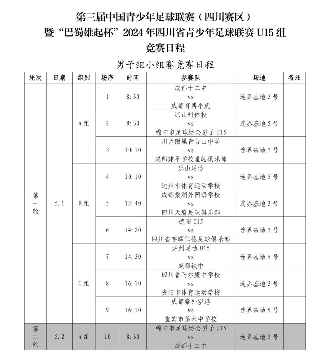 2024年第三届中青赛(四川赛区)暨“巴蜀雄起杯”四川省青少年足球联赛(U13、U15组)拉开帷幕