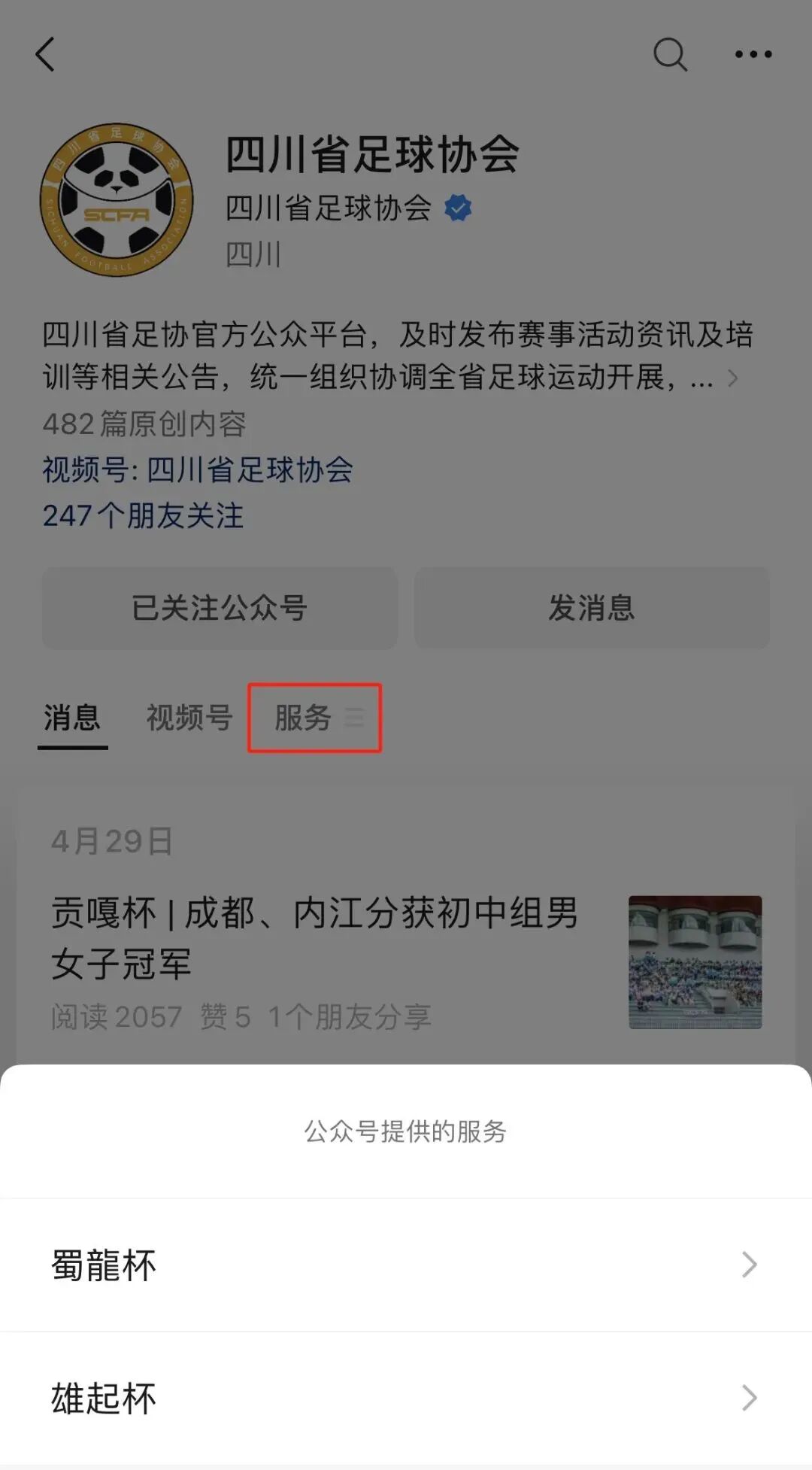 本次比赛将进行全程直播,广大观众朋友们可通过四川省足球协会官方微信公众号观看赛事直播。具体观看方法为:关注微信公众号@四川省足球协会——点击对话框下方菜单栏中的服务——选择对应赛事进行观看。同时观众朋友也可通过四川省足球协会官方抖音以及我是球星APP进行观看。