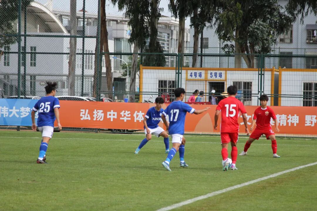 在E组的比赛中,福建男足U19以3-0战胜南通支云U19,5战全胜以小组第一升级至D组;上海海港U19则6-1大胜无锡吴钩U19,以小组第二升级至D组;佛山莱士U19在常规时间内2-2绝平辽服职院男子足球队,并在点球大战中以4-3获胜,3胜2负位居小组第三。