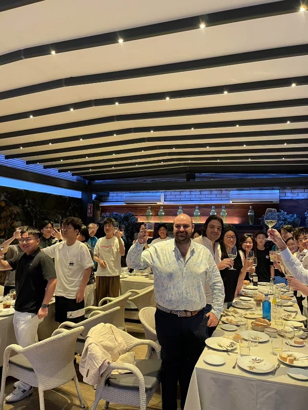毕业典礼结束后,数字口腔医学专业系主任Javier Medina先生以及专业协调教授Cristian Vázquez教授与同学们一起进行了隆重的毕业晚宴,在晚宴中Javier先生再次祝贺全体同学们顺利毕业。