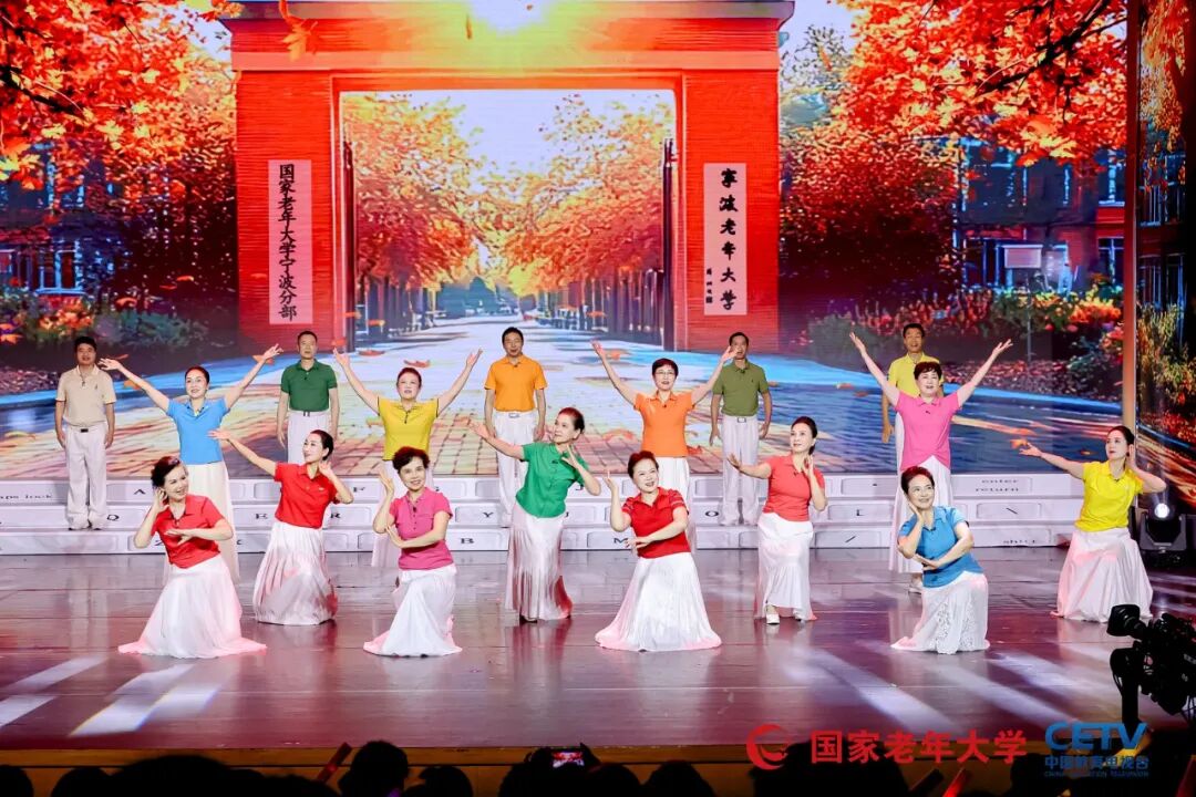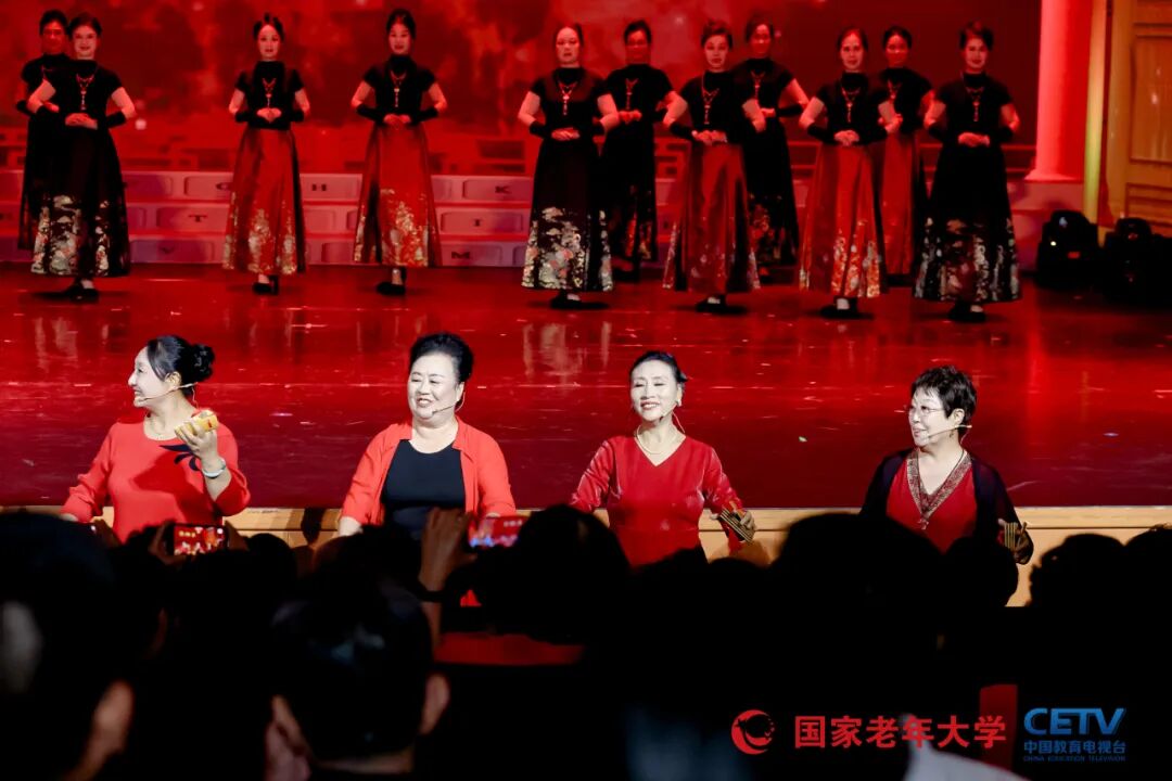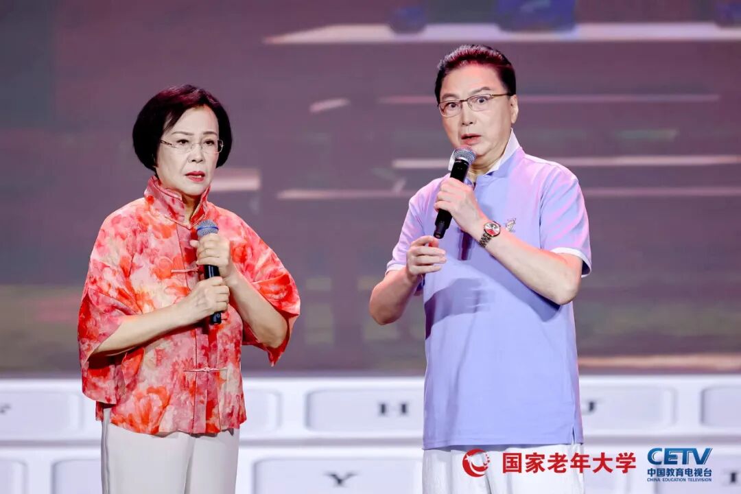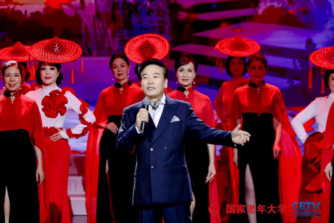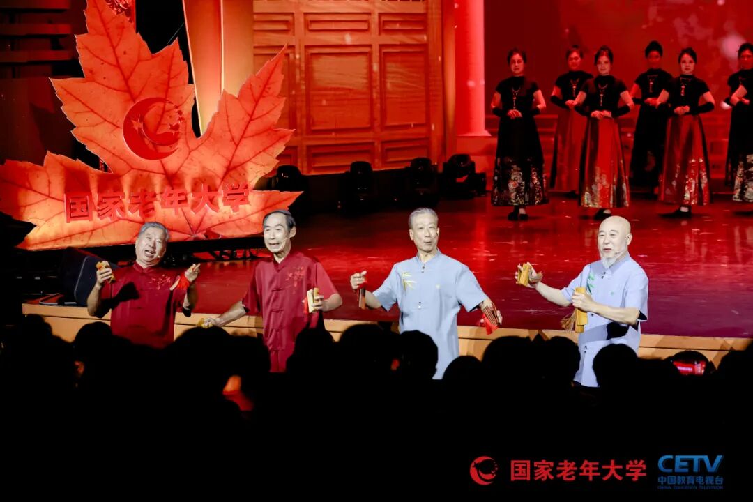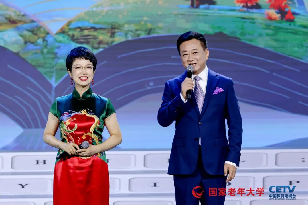 闭幕式作为全国展演活动的大检阅,精心编排,亮点纷呈。演出由朱军、黄 薇等知名主持人和中国教育电视台主持人广超、子涵共同主持,开场节目《乐龄秋光好》融合声乐、舞蹈、器乐等多种形式,《年轻的朋友来相会》与《二十年后再相会》的组合,在三大男高音和女高音、全场合唱及舞蹈表演、手风琴齐奏的演绎下,瞬间点燃现场气氛。二胡演奏《赛马》、群口快板《乐龄乐》等节目也展现出乐龄老人的精湛技艺。表演唱《跨进校门就年轻》由国家老年大学宁波分部改编演出,生动诠释了乐龄人在老年大学“德学康乐为”的快乐生活。姜昆、岳红等特邀嘉宾带来的诗朗诵《在北京的金秋里歌唱》,以及谭孝曾、赵葆秀演唱的戏曲选段《军民鱼水情》等,更是将演出推向高潮。乌兰图雅现场演绎《站在草原望北京》、佟铁鑫演唱的《夕阳红》等歌曲,在伴舞和模特表演的烘托下,尽显乐龄老年群体的活力与风采。