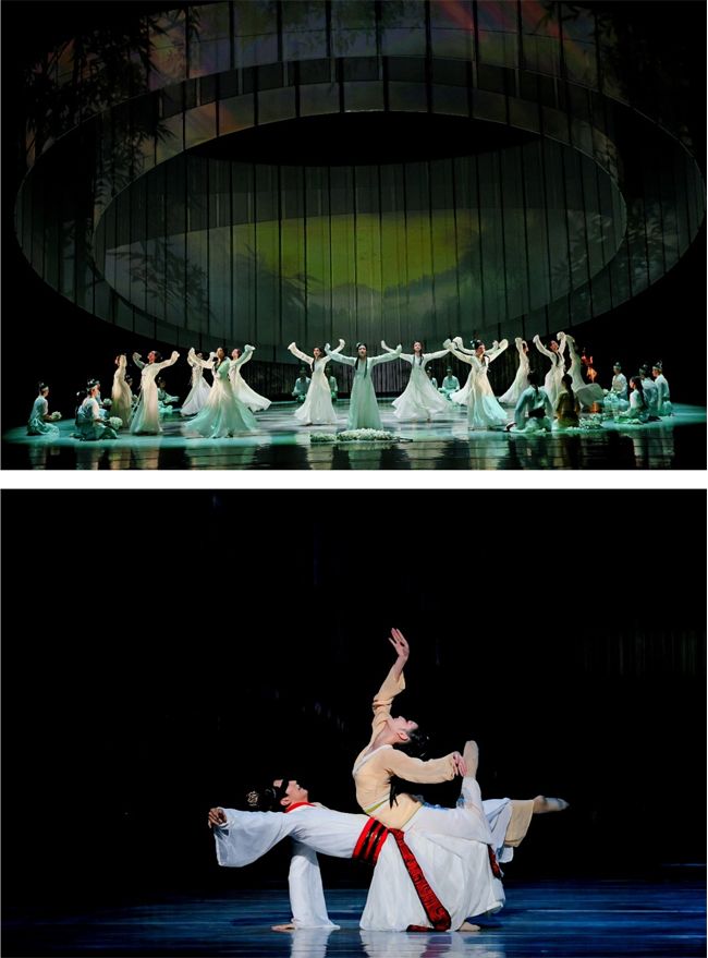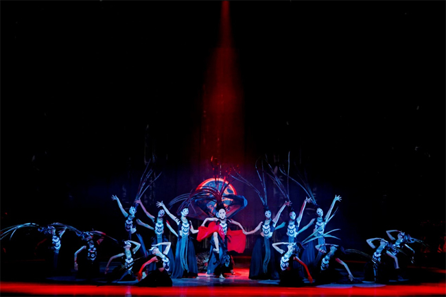 舞剧《乐和长歌》以春秋时期为历史背景,取意"大乐与天地同和,大礼与天地同节",将楚地文化巧妙融入舞蹈叙事,讲述了一个关于爱与恨、忠与信、个人命运与家国选择的动人故事。剧目不仅展示了浪漫瑰丽的楚式美学,更艺术化地展现了楚人开拓进取、追求和平、倡导和谐的生命哲学与文化气度。