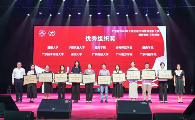 10月12日,广东省2025年大学生新文科实践创新大赛现场决赛在华南农业大学举行,来自39所高校的219个项目展开答辩角逐。广东科技学院凭借强劲的实力与出色的表现,斩获3金、2银、3铜的优异成绩,并在该比赛首次荣获“优秀组织奖”,实现重大突破。