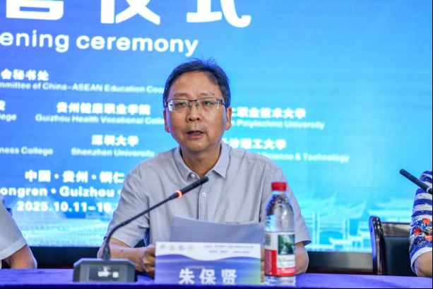 朱保贤在致辞中代表铜仁幼儿师范高等专科学校向参加交流计划的师生表示热烈欢迎。他指出,铜仁是一座底蕴深厚、人杰地灵的城市,文化旅游资源丰富,而铜仁幼儿师范高等专科学校是一所百年师范院校,办学历史悠久,是贵州省“双高”学校、省级国际交流合作示范校和华文教育基地,也是教育部“中阿高校10+10合作计划”成员单位、首批“中国——东盟千校携手计划”项目学校,连续5年获批省教育厅“知行贵州”丝绸之路青年交流计划重点项目,在国际化办学方面取得了丰硕成果。希望大家在此次交流中感悟中华优秀传统文化、多彩贵州民族文化、桃源铜仁生态文化的独特魅力,共同做好国际青年做中华文化的传递者、中外文化交流的积极促进者、民间友好交往的友谊使者。