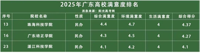 近日,阳光高考信息平台正式发布《广东高校满意度排行榜》,湛江科技学院位列广东省民办高校“满意度”第三!该榜单基于超过580万在校学生的实名评价,从校园环境、学习体验等多个维度对高校进行综合评估,反映了学生对本校的满意度,也是学生对学校办学质量最直接的认可。