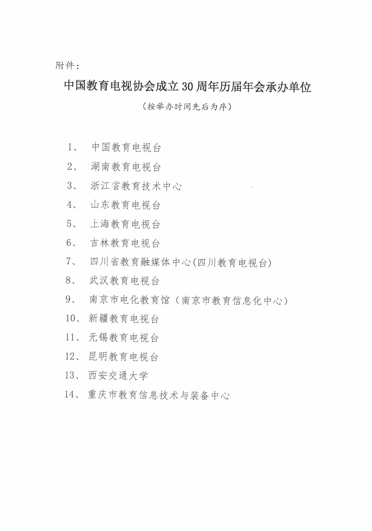 中国教育电视协会关于成立30周年致敬感谢历届年会承办单位的决定