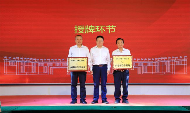 在与会人员的共同见证下,徐丽萍与李强共同签署了《纳溪区天仙镇双新村村民委员会•四川化工职业技术学院产学研合作协议》。文申柳向双新村和企业代表颁发了“乡村振兴实践基地”和“产学研合作基地”牌匾。