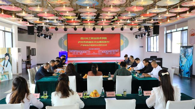据悉,纳溪区天仙镇双新村具有“天仙红”果酒、天仙红橙等特色产业,每年生产销售果酒50000斤,产值超过500万元,年创利润100万元以上,在品牌打造、技术升级与市场拓展方面存在迫切需求,而四川化工职业技术学院拥有雄厚的科研人才力量,特别是在生物工程、农业技术、电商直播等领域优势显著,双方存在巨大的合作空间。本次合作协议的签署不仅将为双新村产业提质增效注入核心动能,也将为四川化工职业技术学院师生提供宝贵的科研、实践、实训与应用平台,更是探索“校地企合作”服务地方经济发展、打造可复制推广的乡村振兴示范样板的重要实践,必将为科技赋能乡村产合作业振兴谱写新的篇章。