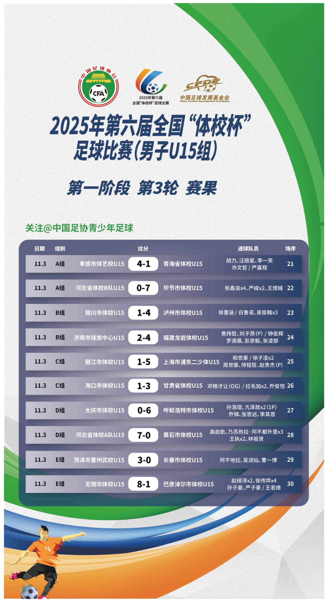赛果|2025年第六届全国“体校杯”足球比赛(男子U15组)第一阶段第3轮