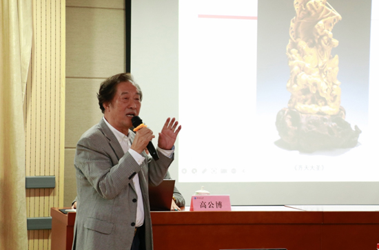现场,来自希腊、塞浦路斯的艺术家介绍他们对木作艺术独特的艺术视角与创作理念。亚太地区手工艺大师、中国工艺美术大师、乐清黄杨木雕代表性传承人高公博分享了从业60年的艺术创新之路。