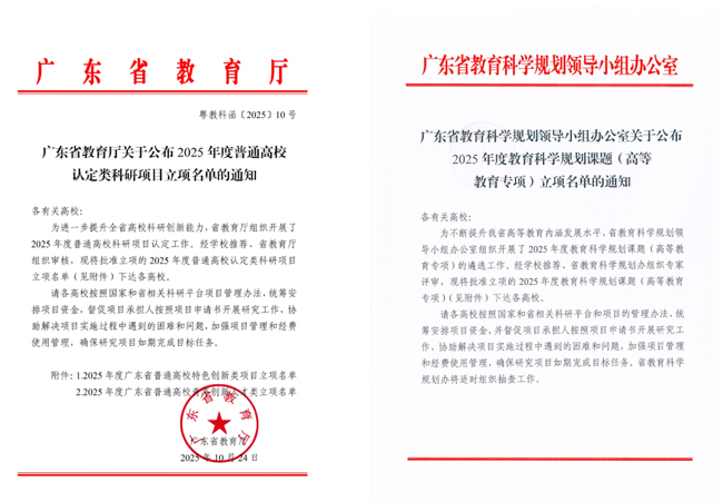 近日,2025年度普通高校认定类科研项目、教育科学规划课题(高等教育专项)立项名单公布。广东酒店管理职业技术学院在此次评审中捷报频传,共获批省级认定类科研项目8项,教育科学规划课题(高等教育专项)3项,总计立项数达11项,充分展现了学校教科研水平的显著提升和持续发展的良好态势。
