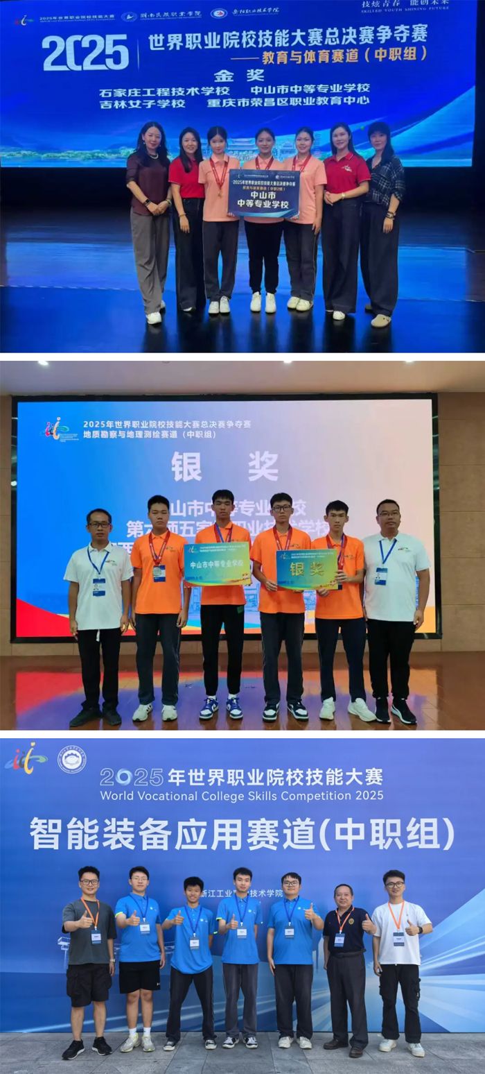 今年8月底,在2025年世界职业院校技能大赛总决赛争夺赛上,中山市中等专业学校参赛团队分别夺得教育与体育赛道(中职组)金牌、地质勘察与地理测绘赛道(中职组)银牌、智能装备应用赛道(中职一组)银牌,这是中山市中等专业学校在世界职业院校技能的首次重大突破,不仅标志着学校在高素质技术技能人才培养领域迈出坚实步伐,更彰显了学校在教学改革、高水平学校建设进程中的显著成效。