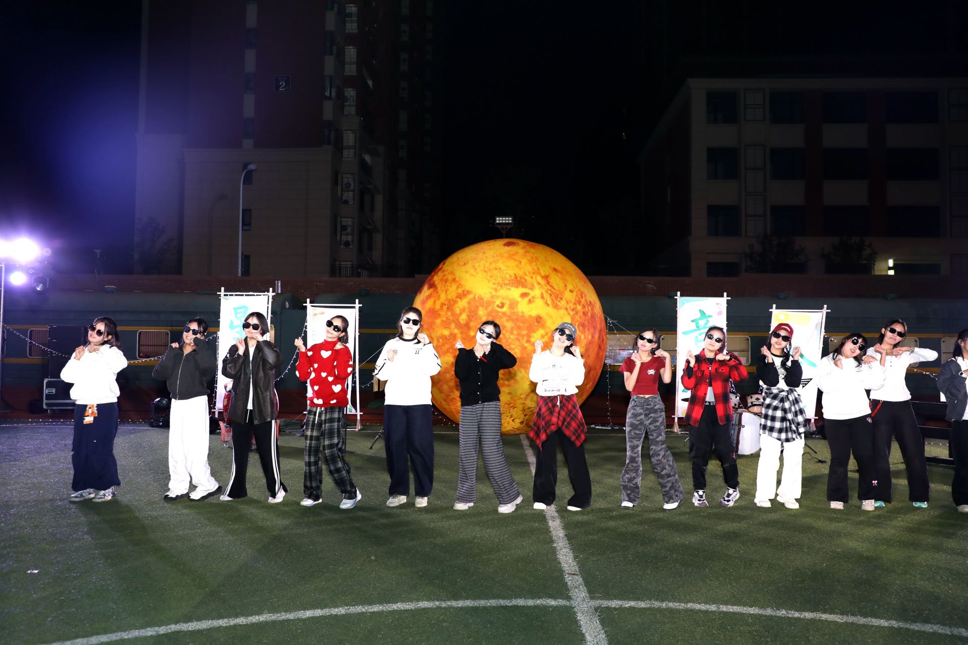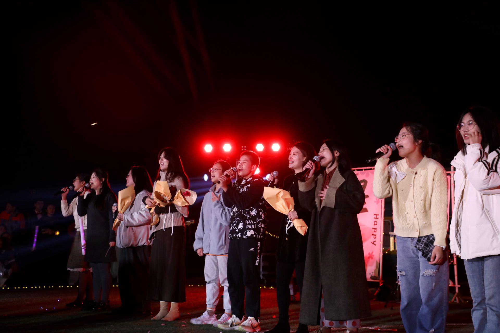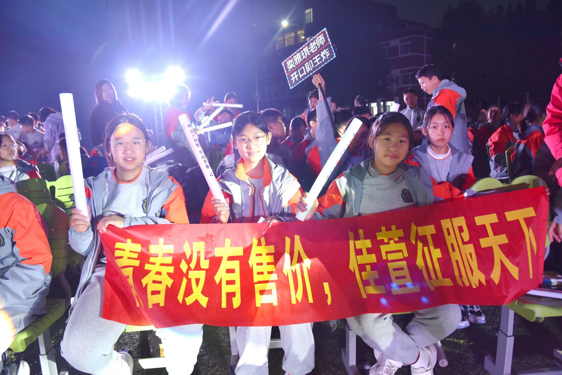 音乐会的尾声,全场师生起立,挥舞荧光棒,在刘洋、孙赛、徐晓斐、田承凤等老师的领唱下,齐声高歌《仰望星空》。挥舞的荧光棒连成一片流动的星海,歌声承载着希望与梦想,飘向深邃的夜空。那一刻,星空不仅是背景,更是每一个青春梦想的见证。