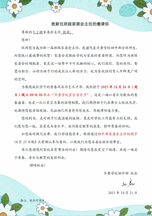 是家委会的温暖护航:孙磊校长亲笔撰写邀请函,字里行间满载真诚;家委会成员全力协助,从前期准备到现场服务,成为了音乐会最坚实的后盾。