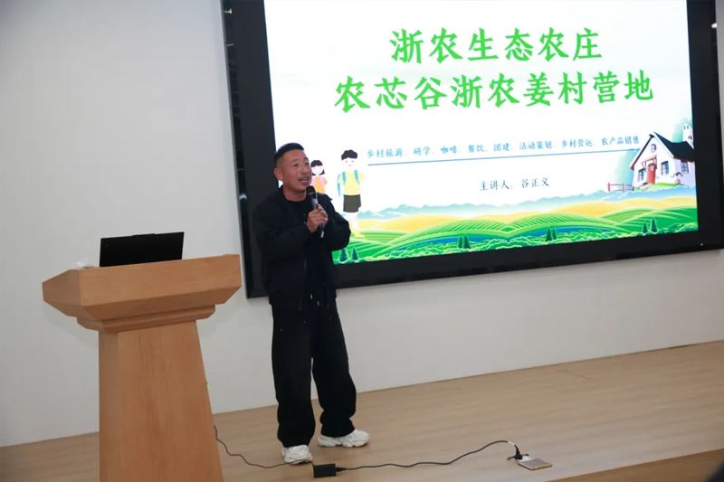 在共富沙龙环节,三位学员代表带来了各具特色的共富实践分享。浙农生态农庄负责人谷正义讲述了从野生动物养殖到“农旅融合+研学教育”的转型之路,年接待游客近8万人次、带动近百人就业的成果令人瞩目。