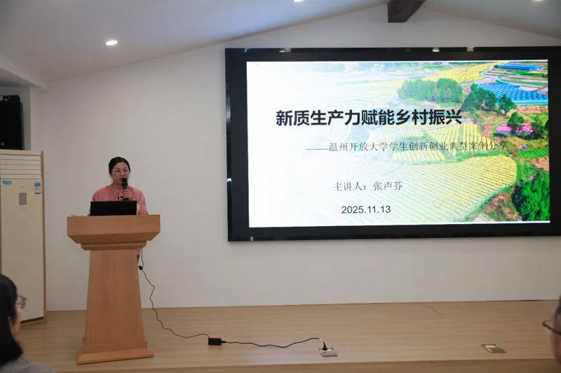 随后,温州开放大学双创导师张声芬博士带来《新质生产力赋能乡村振兴——开放大学学生创新创业典型案例分享》专题讲座。她结合真实案例,深入剖析创新创业中的关键节点与成功要素,既有理论高度,又有实践指导意义,为学员们厘清了创业思路。