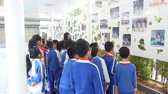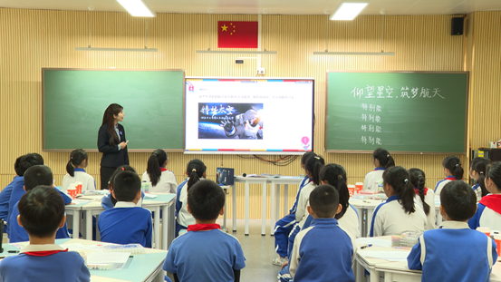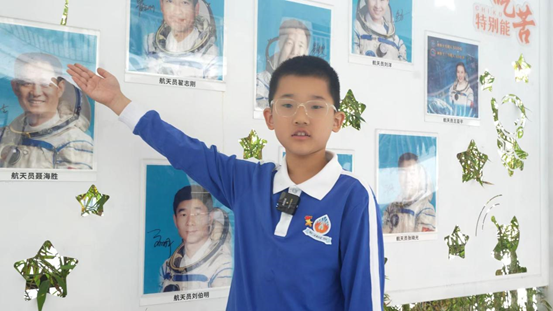 星光长廊沐朝晖,航天英名入眼来。第一节课《致敬中国航天人》在充满诗意的星光长廊拉开帷幕。长廊两侧,航天员亲笔签名照熠熠生辉,航天事迹照片串联起中国航天从起步到腾飞的壮阔征程。李育老师循着光影轨迹,带领孩子们走近邓清明22年坚守的执着、杨利伟太空探险的勇敢、孙家栋攻克难关的坚韧、王亚平薪火相传的责任。孩子们驻足凝视签名,指尖轻抚照片里的航天瞬间,在一个个感人故事中,初识“特别能吃苦、特别能战斗、特别能攻关、特别能奉献”的航天精神,让崇敬与自豪在心中悄然滋长。