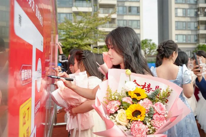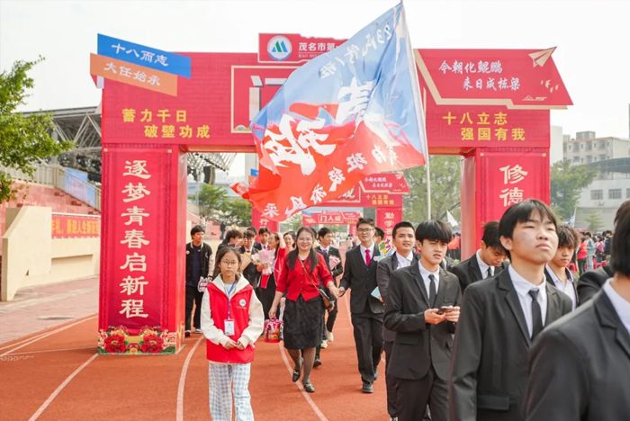 活动最后,学生们携手父母师长,在激昂的进行曲中依次跨越“成人门”。当同学们跨越成年门时,礼炮鸣响,象征着新的人生征程正式开启。跨越瞬间,学生们高举右手齐声呐喊“十八而志!强国有我!”,展现了茂名一职学子昂扬向上的精神风貌。