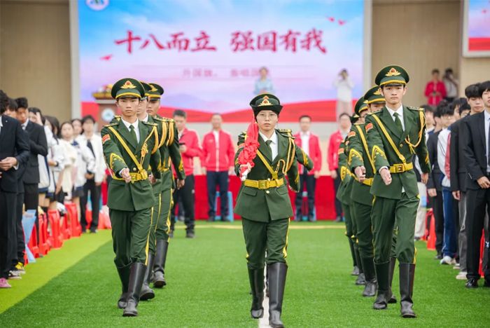 上午9时,仪式在庄严的国歌声中拉开帷幕。吴泽波校长在致辞中寄语学子:“成年意味着独立,更意味着责任。希望你们从今天起,以公民的身份敬畏规则、担当使命,将‘强国有我’的誓言化为脚踏实地的行动。”他勉励同学们在宪法精神的指引下,走好人生的每一步。