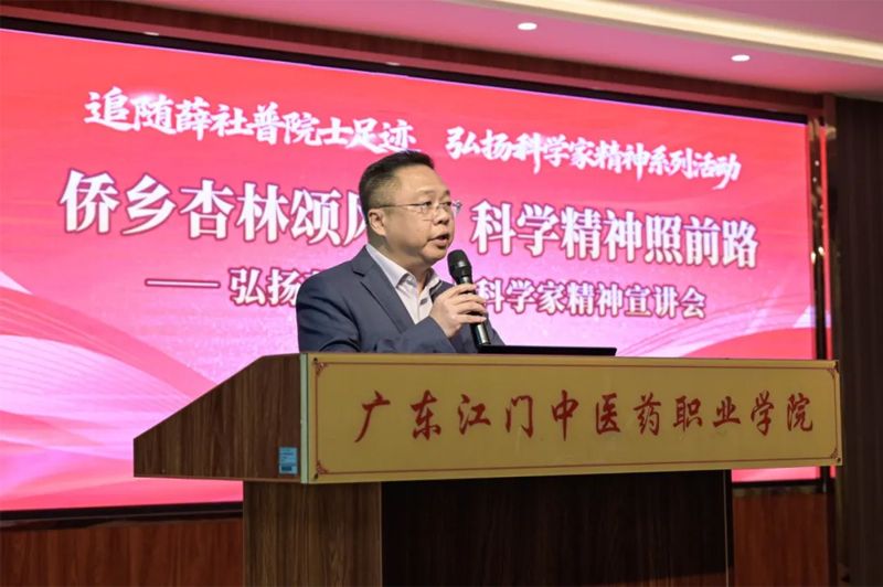 此次宣讲会不仅是一场缅怀先贤的纪念活动,更是一堂生动深刻的科学家精神思政课。广东江门中医药职业学院将以此次活动为契机,持续深化课程思政建设,推动科学家精神融入教育教学全过程,引导广大师生自觉传承侨乡医药文脉,勇担中医药振兴发展使命,为培养更多高素质中医药人才、服务人民健康事业作出新的更大贡献。(通讯员:常陆林)