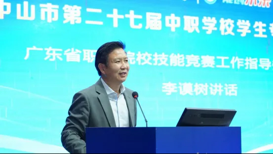 广东省职业院校技能竞赛工作指导委员会主任李谟树在开幕式上发表讲话,对中山市职业教育的发展历程给予了高度评价。李谟树指出,中山市职业教育基础扎实、体系完善、特色鲜明,在服务区域产业发展、培养高素质技术技能人才方面成效显著,近年来在各级各类技能竞赛中成绩突出,充分展现了中山职业教育高质量发展的良好态势;同时,通过多年的竞赛实践中,不仅有效锻炼了一大批技术技能人才,也持续培养和锻炼了裁判员、指导教师和竞赛专家队伍,为职业教育高质量发展夯实了人才基础。李谟树强调,职业教育要始终坚持服务发展、促进就业的导向,各中职学校在备赛和教学过程中,要进一步深化产教融合,主动融入行业企业,紧跟产业发展趋势,及时引入新技术、新工艺、新标准,将真实生产场景和前沿技术转化为教学资源和竞赛内容,不断提升人才培养与产业需求的契合度,真正实现教育链、人才链与产业链、创新链的有机衔接,为经济高质量发展和产业转型升级注入源源不断的活力。